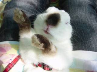 あと、青ちゃん、フロくん、むくちゃんの写真がな〜〜い。m(__)m ので、フロパパのうさぎ整体のもようを。 |