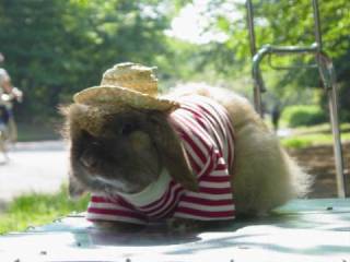 こてつくん。 すわってニンジン食べてた・・・。 不思議なうさぎ。(笑) |