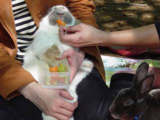 うさぎの集団に、いろんな人が寄ってきました。 「抱っこさせてくださいっ!」 と言ってくれた女の子とひのき。 楽しかったです。 |