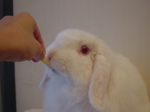 ちえり(ルビーアイドホワイト) なんか食ってまっせ・・ |