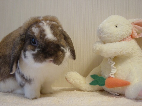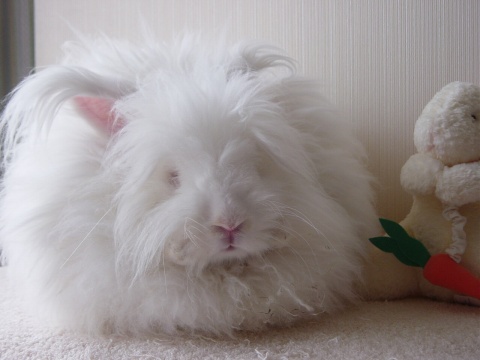 ん?ちえりじゃなくて・・ちえる? イングリッシュアンゴラの男の子 『びいで』です。『ビーちゃん』て呼んで下さいね。 (近日中に我が家のうさぎ紹介のページに仲間入りします) |