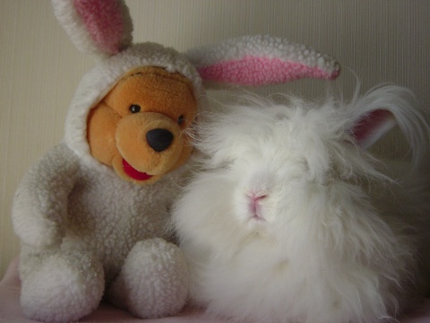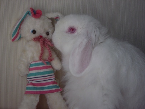 オフホワイトのきれいな色のうさぎちゃん。 ほんわかした雰囲気があかに合うかなーと思うけど、 高さがあるのでなかなか育児日記には登場できず・・ おとなうさぎちゃんとのツーショットのほうがかわいさが増す? エスコートはすーちゃんでした♪ |