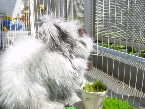 半平太は元気に遊びまくる。 あっこんにもらったチモシーの種からにょきにょき生牧草成長中。 |