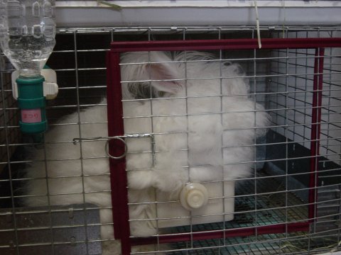 日差しが強くないうちに、お散歩タイム。 どこがどうなってるのかわからないまこもです。(笑) ボディーはサマーカットになっています。^^; アンゴラのグルーミングをしはじめるとあっという間に時間がたつ・・・。 |
