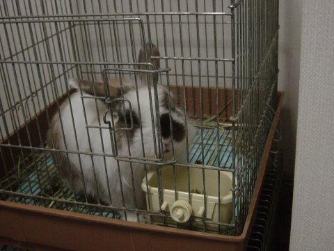 お昼寝タイム。 完全にうさぎの部屋をパタンと閉めます。 おーいおーいと言う子だけ、わたしのひざの上に乗って一緒にPCすることも。 |