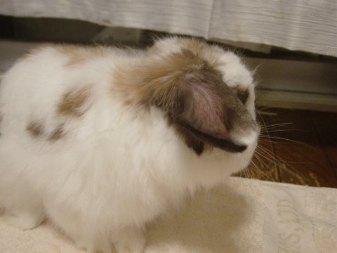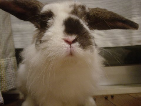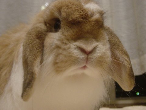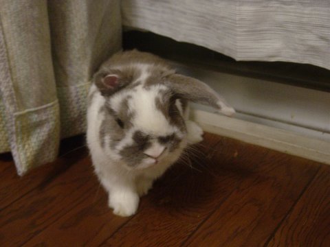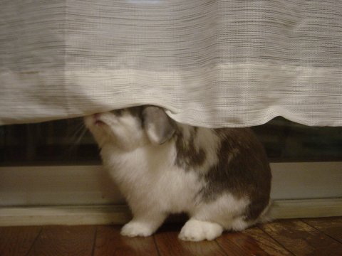 みみおでした。 洗ってちぢんでしまったカーテンに興味ありの様子でした・・。 |