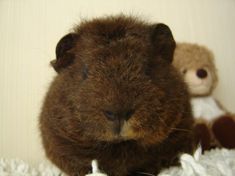テディモルモットです。 名前悩み中。 わたしが生まれたときに家にいたコリーの名前にしようか・・ 音楽用語にしようか・・・ |