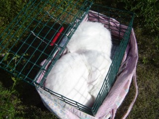 公園に行っても食べ、帰ってきても食べ、 食べてばかりのちえりでした。 いっぽうのあざみは、いびきかいて寝ています。・・ええ、おっさんですから。 |