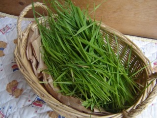 ここのところの陽気で生牧草がグングン成長。 収穫で〜す。 |