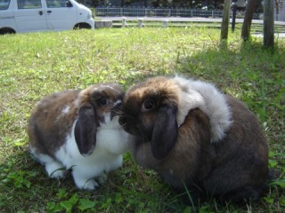 いとこ同士。 きっくも走ろうよ!とでも耳打ちしてるのでしょうか^^ |