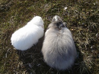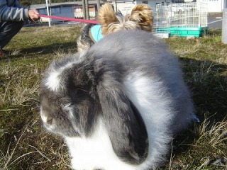 アメファジじゃないんですよ〜 左はちえり5歳。アメファジの中では大きいほう。 さらに大きいですよね。 フレンチロップなのです。 ・・・・長毛の。 珍種? |