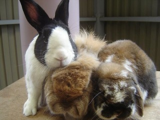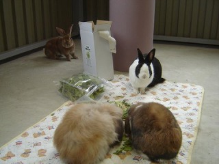 LOPLOPLAND老人会、記念撮影。 はいっポーズ♪ (※メンバーみんな男子です。ケンカしないのが不思議でしょ〜。 うさぎ同士の接触、本当は避けてくださいね) |