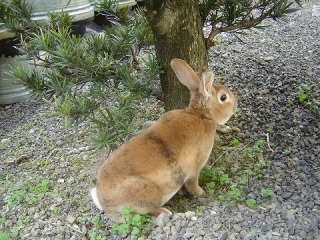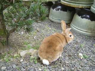 体育館でもいいけど、うさんぽは外のほうがいいぞ〜 と言いたげなつく。 |