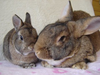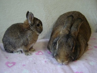 ふたり、同じ毛色。 いちばんちいさい品種といちばんおおきい品種。 いつか並べてみたいなぁ〜 でももーちゃんがひと飲みで鯉ちゃんを食ってしまったらたいへんだしなぁ〜 と、思っていたのだけど あれ? なんなく仲良し♪ もーちゃんはもともと優しいうさ柄な上に オカマさんになっているからかもしれません。 |