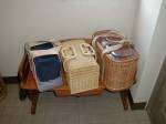 ![]() キャリーバッグ我が家では、三種類のキャリーバッグがあります。 どれもかわいくて気に入っています。 底板の上に、植木鉢用の底網を敷いたり、一応工夫しています。 |