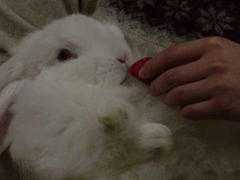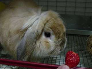なつみさんにいただいたいちご、 いっただっきまぁす♪ ひのき、大口あけてパクパクパク。 |