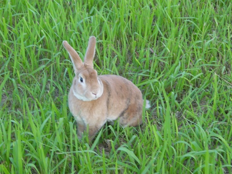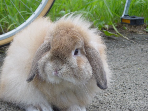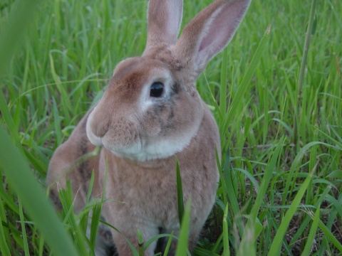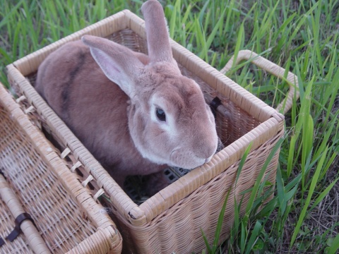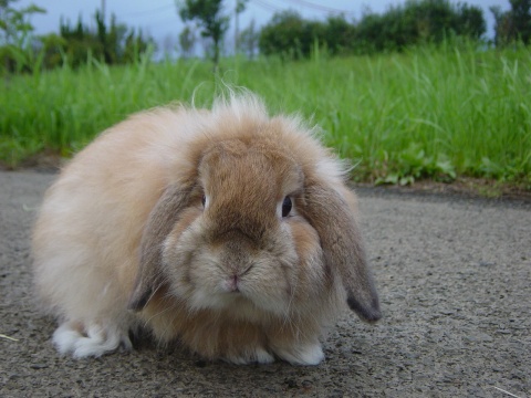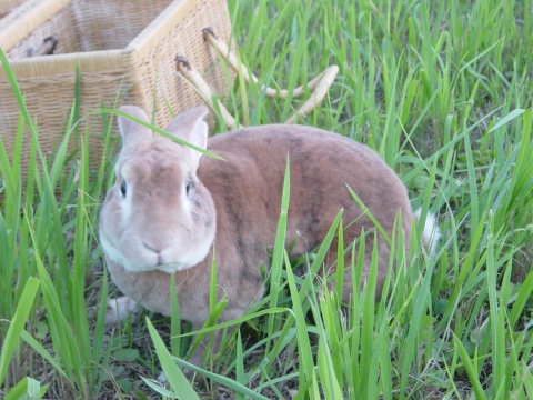 ぼけーっと動かない。「おいで!」の練習してるのに。 かと思ったら、あらぬ方向へすんごいスピードで走った! (かりんこのくせに速い) それが本来のうさぎなのかもしれないけど・・。 |