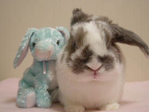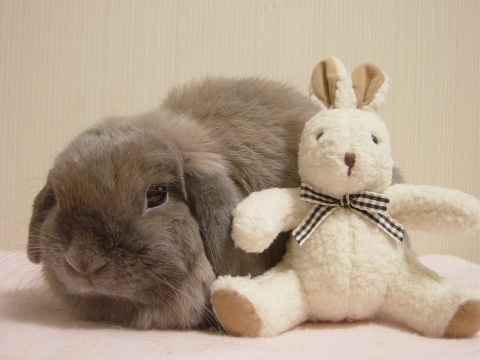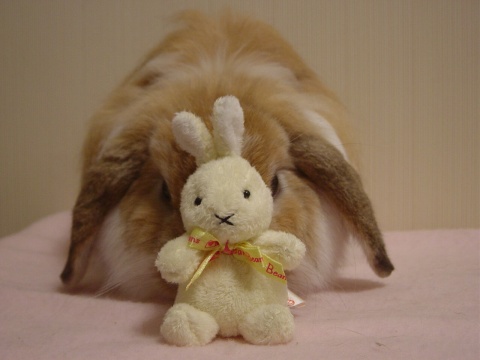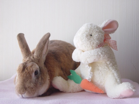 オフホワイトのきれいな色のうさぎちゃん。 ほんわかした雰囲気があかに合うかなーと思うけど、 高さがあるのでなかなか育児日記には登場できず・・ おとなうさぎちゃんとのツーショットのほうがかわいさが増す? エスコートはすーちゃんでした♪ |
