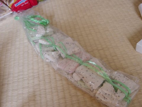 いろんなお菓子を持ち寄りましたけど これは、ももかさんから送ってもらった東北の干し餅。 |
