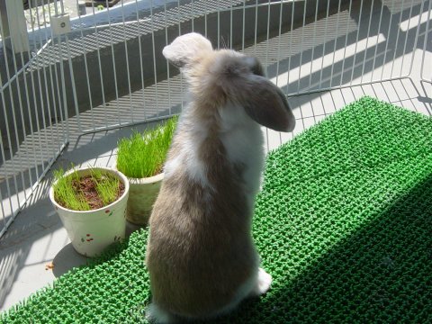 半平太は元気に遊びまくる。 あっこんにもらったチモシーの種からにょきにょき生牧草成長中。 |