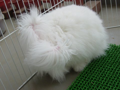 日差しが強くないうちに、お散歩タイム。 どこがどうなってるのかわからないまこもです。(笑) ボディーはサマーカットになっています。^^; アンゴラのグルーミングをしはじめるとあっという間に時間がたつ・・・。 |