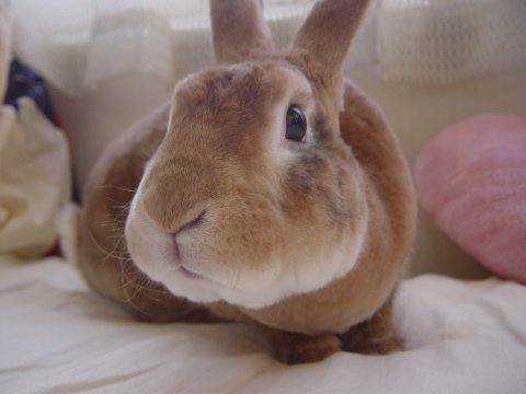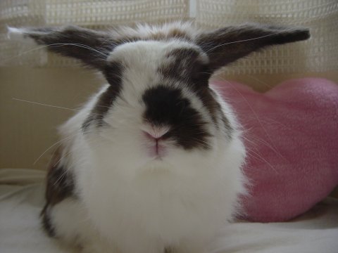 バタくん、耳だけがぱたぱたと動く・・・ よく話を聞いてるようなので、ざぶとん同盟の書記ということで。 |