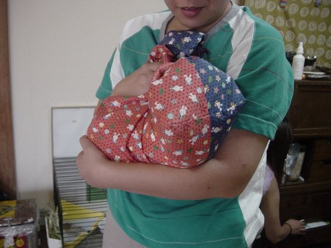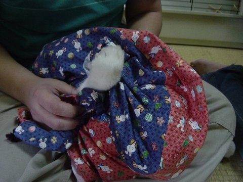 そこでご紹介です。 そんな「コ・・・」じゃーちゃんのような子でもサクっと爪きりなどお手入れができるグッズ。 ヒロッズ作成、じゃーちゃん袋。 |