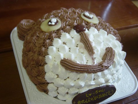 バースデーケーキも♪ ちゃんとプレートは「じゃーちゃんおめでとう」だし あて先も「○○じゃがいも様」で送りましたよ。^m^ |