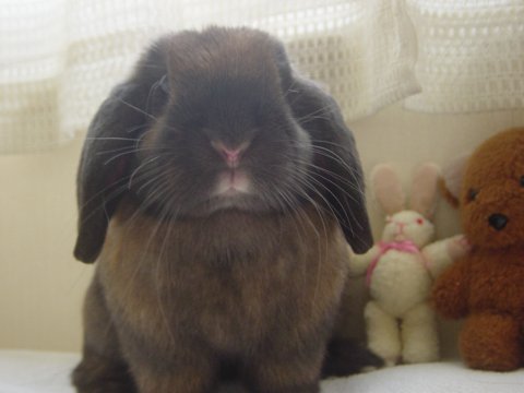 「えるかでしゅ・・・」 はずかしがりや。 以上、ブルちゃんにまつわる我が家のうさぎでした♪ ブルちゃんまたこりずに遊びにきてね! |