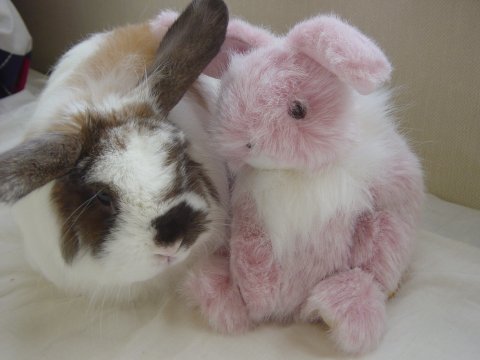 ちいさいピンクのうさぎちゃん。 わたしの大好きなタオルメーカーのぬいぐるみ。 つっくんのすべすべ肌と似ています。^^ エスコートはつくでした♪ |