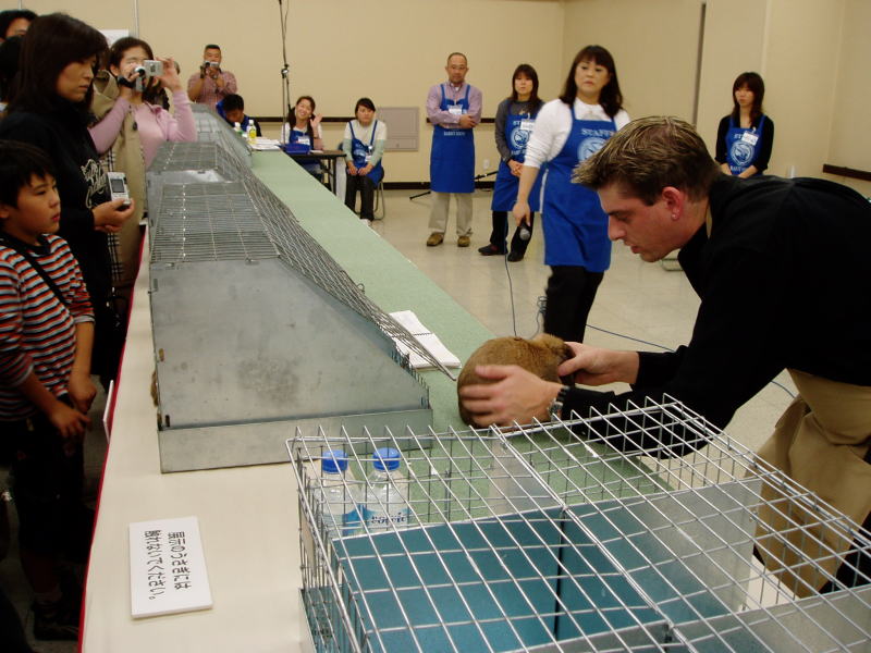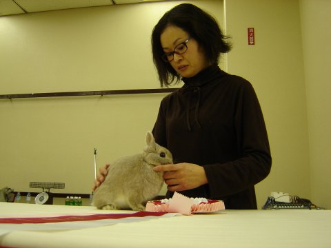 「蝶よ☆花よ☆まこも様よ」 みんなに注目してもらってうれしかったようですけど やっぱり過剰でしたね・・・ 審査前にひどい下痢をしてしまいました。カワイソウ・・ ショーにエントリーしてるうさぎさんを、つんつんしたりしないでくださいね。 おうちのうさちゃんでも、自分のおうちにいるときだとしてもつんつんしたら「ピク!」っとなりますよね。 ショーのときはただでさえいつもと違う環境・・ しかもまこもの場合はすんごくせまいキャリーでぎゅうぎゅう・・(ごめんね) 次回、もじゃもじゃを連れて行くときは広いキャリー&蚊帳でも吊るそうかと。 オーナーの許可なく写真撮影もほんとはダメなんですよ〜〜〜 |