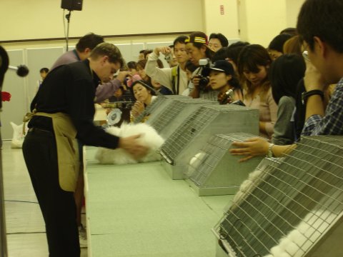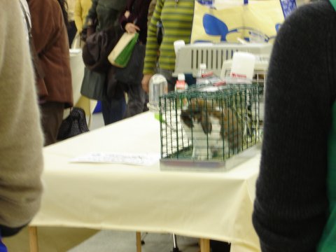 二日目は全品種のショー。 今回は会場が広くて審査も見やすかったですね。 (画像ひろこさんからいただきました) 奥のほうでわたし手ふってますわ〜〜あははははは〜〜 |