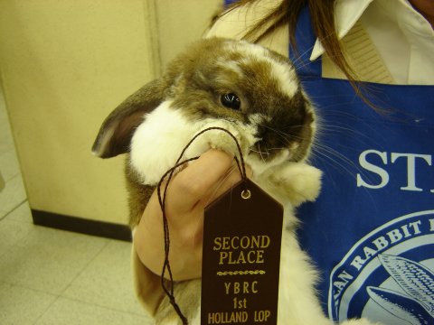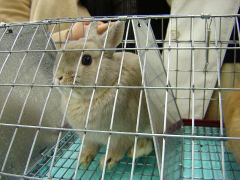 今回は2日間にわたって、大きなショーが開催されました。 一日目はネザーのみ、ホーランドのみの2つのスペシャリティーショー。 うちからはなずながエントリー。 ひかえめにひとり。(笑) なすこぽつーんと出番を待ってます。 |