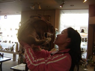 フレミッシュジャイアント なまえは「もだま」くんです。 へんな名前?(笑) 藻玉。世界最大の豆のことです。 持っていると幸運が訪れるらしい。 もだまく〜ん、よろしくぅ^^ わたしに幸せをををををををを!! |
