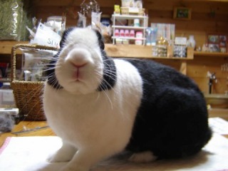 |  | お店で もーちゃんを見るお客様100%笑います。 「おっきいいいい〜」 いるだけで笑いのとれる芸うさです。 こないだ 「これが大将か?」 と言われ、わたしのツボにハマりました(笑) 今日からもーちゃんがうちの大将です。 ←(うちの前のハンドメイド雑貨DesertMoonさんの店先にて) |