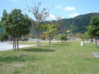 うちから歩いてでも行ける公園。 バックに山があるのがすごいでしょー。 |