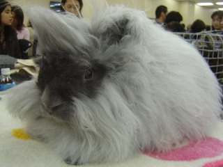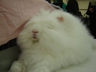 この子もすばらしいアンゴラさん。 会場、とてもムンムンしていたので、お疲れ気味でした。 |