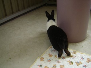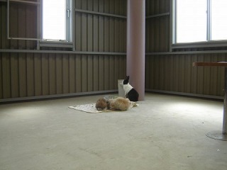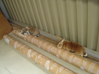 体育館でもいいけど、うさんぽは外のほうがいいぞ〜 と言いたげなつく。 |