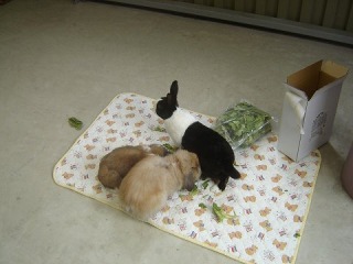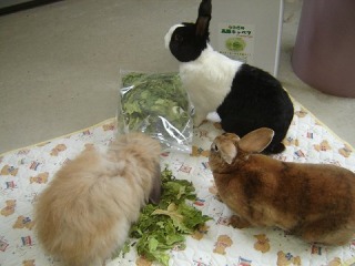 LOPLOPLAND老人会、記念撮影。 はいっポーズ♪ (※メンバーみんな男子です。ケンカしないのが不思議でしょ〜。 うさぎ同士の接触、本当は避けてくださいね) |